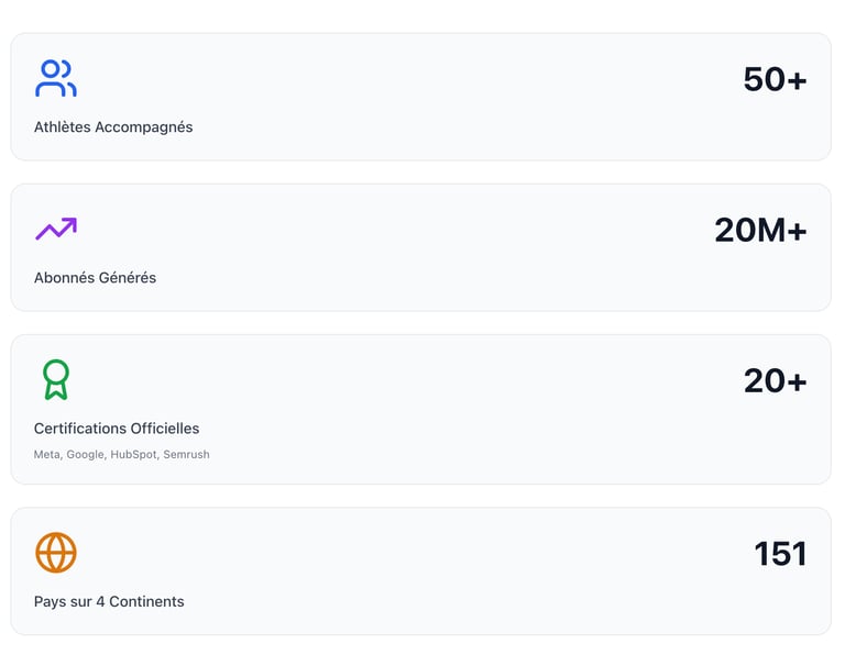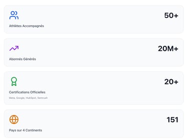 Nous accompagnons les athlètes de haut niveau dans la maîtrise complète de leur présence digitale : image de marque, notoriété internationale, gestion des réseaux sociaux, e-réputation, monétisation et stratégie post-carrière.