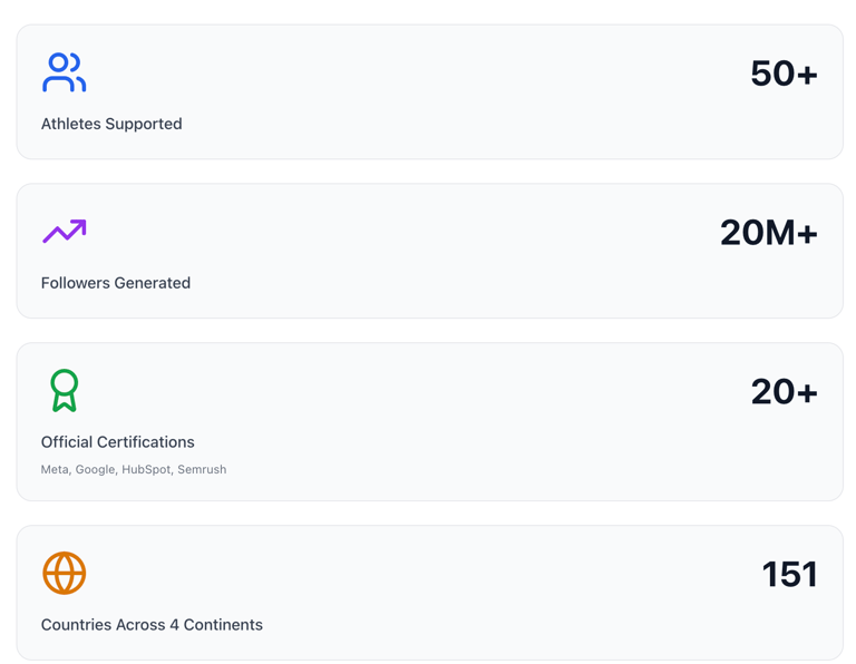 We support elite athletes in fully mastering their digital presence: brand image, international recognition, social media management, online reputation, monetization, and post-career strategy.